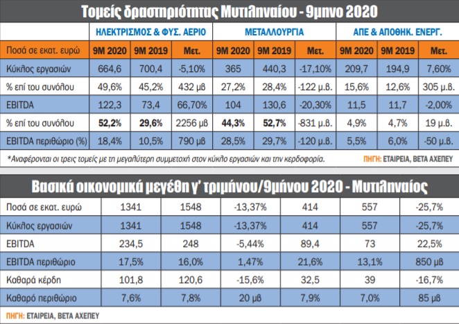 Τα οικονομικά αποτελέσματα γ’ τριμήνου/9μήνου 2020 του ομίλου Μυτιληναίος ήταν καλύτερα των εκτιμήσεων της αγοράς τόσο σε επίπεδο λειτουργικής κερδοφορίας όσο και καθαρών κερδών. Σε ό,τι αφορά τους επιμέρους τομείς όπου δραστηριοποιείται ο όμιλος, σημαντική ήταν η συνδρομή του ηλεκτρισμού και φυσικού αερίου, όπου στο 9μηνο του 2020 τα κέρδη EBITDA άγγιξαν το 52,2% των συνολικών EBITDA, έναντι μόλις 29,6% το αντίστοιχο περυσινό διάστημα. Επίσης, το αντίστοιχο περιθώριο εκτοξεύθηκε από 10,5% σε 18,4%, ήτοι αύξηση 790 μ.β. Το αξιοσημείωτο είναι ότι η επίδοση αυτή επετεύχθη παρά την πανελλαδικά μειωμένη κατανάλωση ηλεκτρικής ενέργειας κατά -4,8% λόγω της πανδημίας, αλλά και τις κατά 35% χαμηλότερες τιμές στη χονδρεμπορική αγορά. Η Protergia συνεχίζει να κατέχει τη δεύτερη θέση ανάμεσα στους προμηθευτές ηλεκτρικής ενέργειας (πίσω από τη ΔΕΗ), με μερίδιο αγοράς 8,5%, έναντι 5,51% στα τέλη του 2019.