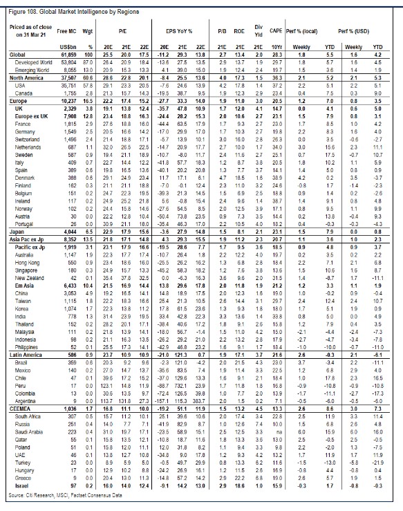 Μεγάλο μέρος αυτής της βελτίωσης μπορεί να έχει ήδη αποτιμηθεί, όπως επισημαίνει η Citi. O δείκτης MSCI AC World διαπραγματεύεται με εκτιμώμενο δείκτη p/e 12μήνου στο 20x, πολύ υψηλότερο από το μέσο όρο του 15x.